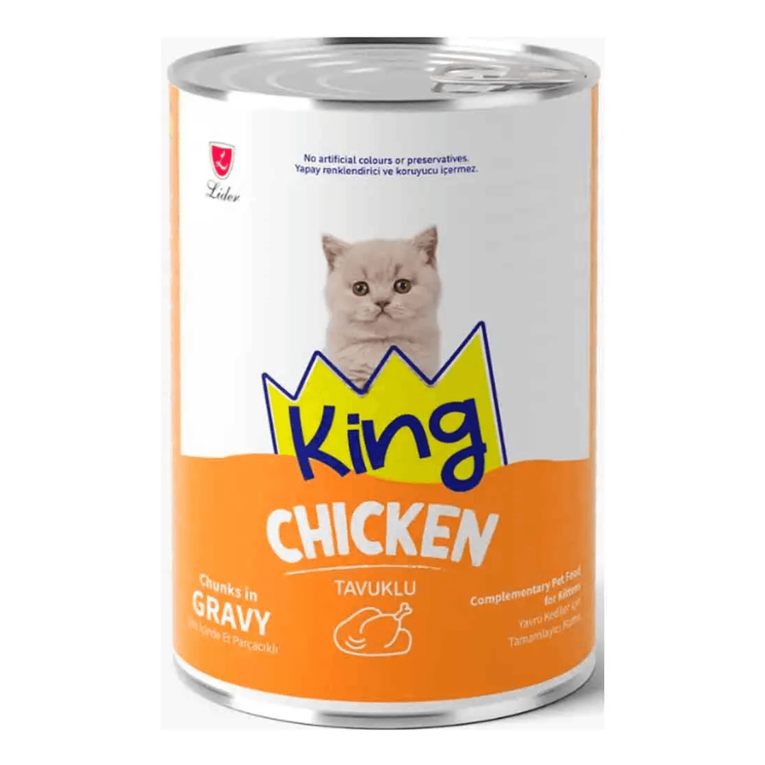 KING CANNED KITTEN FOOD CHICKEN CHUNKS IN GRAVY is a complete and balanced wet food specially formulated to support the healthy growth and development of kittens during their most critical early months.